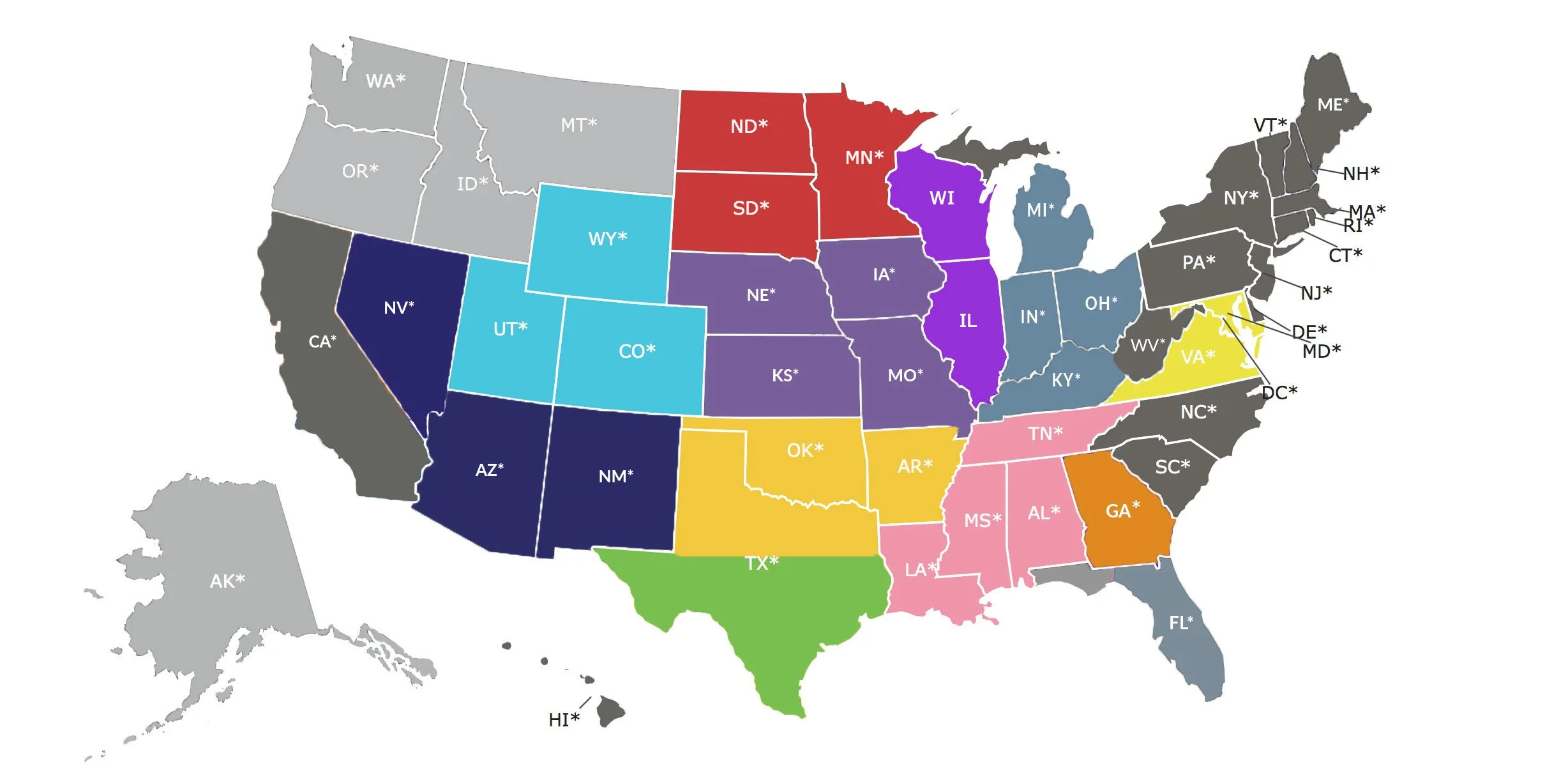 Click the corresponding color from the map, below to be directed to the rep group in your area.